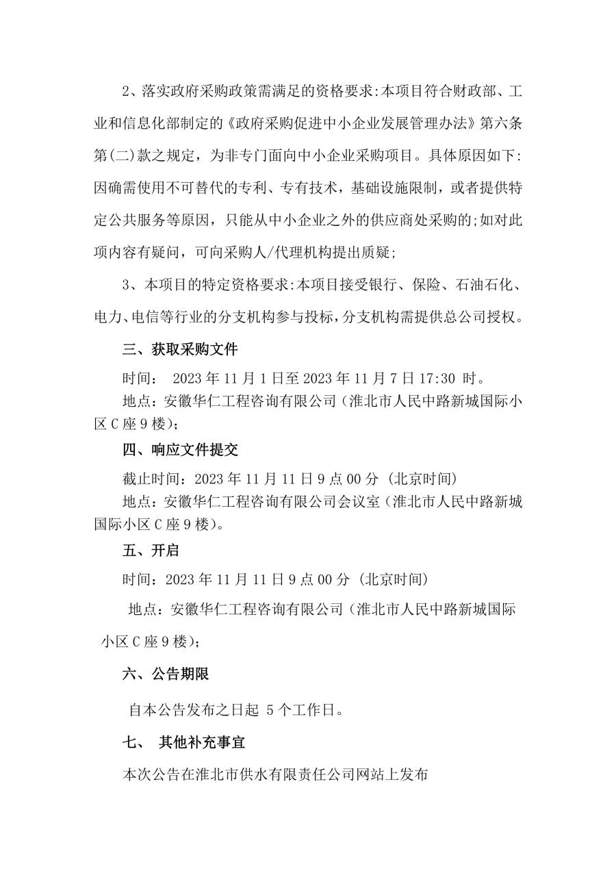 淮北市供水有限責(zé)任公司二次加壓泵房數(shù)據(jù)專線項(xiàng)目招標(biāo)公告