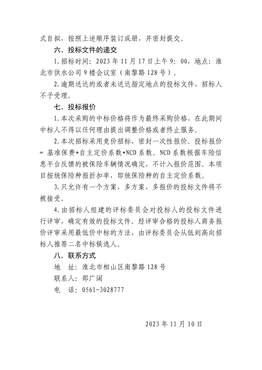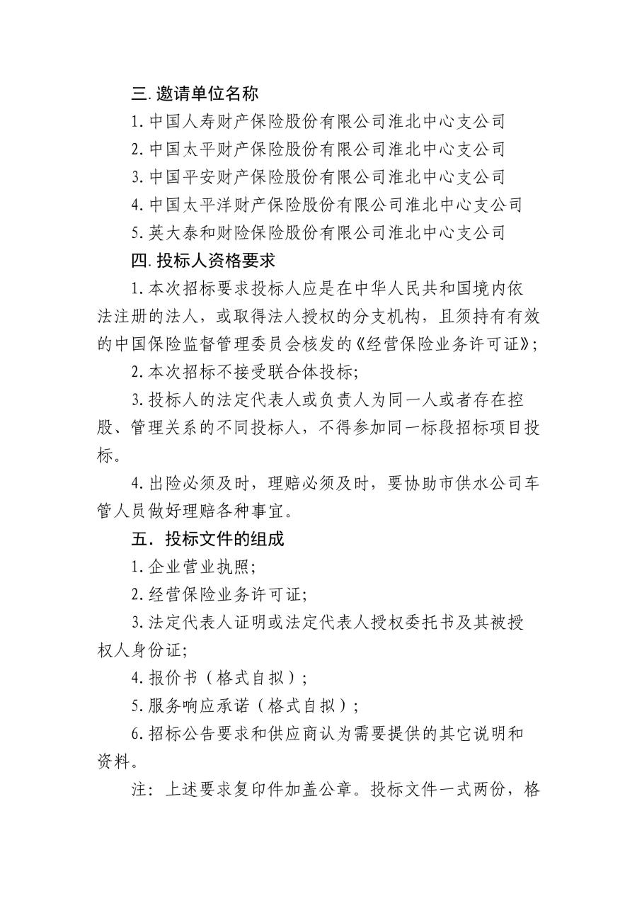 淮北市供水有限責(zé)任公司車輛保險(xiǎn)集中采購(gòu)項(xiàng)目邀請(qǐng)公告