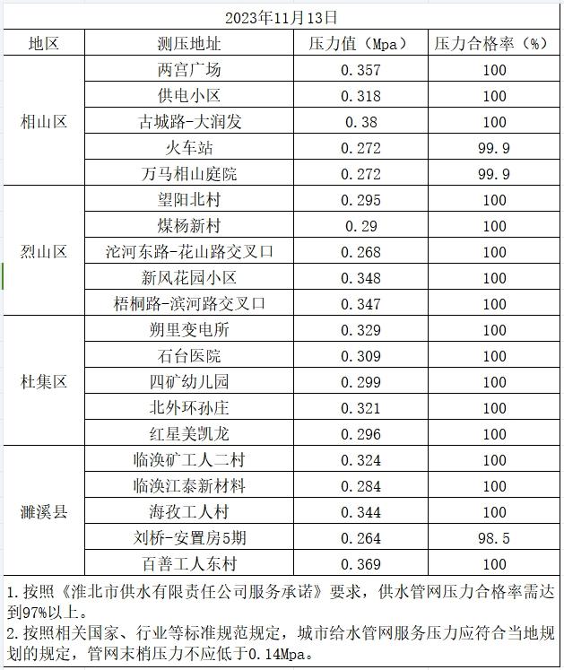 2023年11月13日水壓信息公開(kāi)