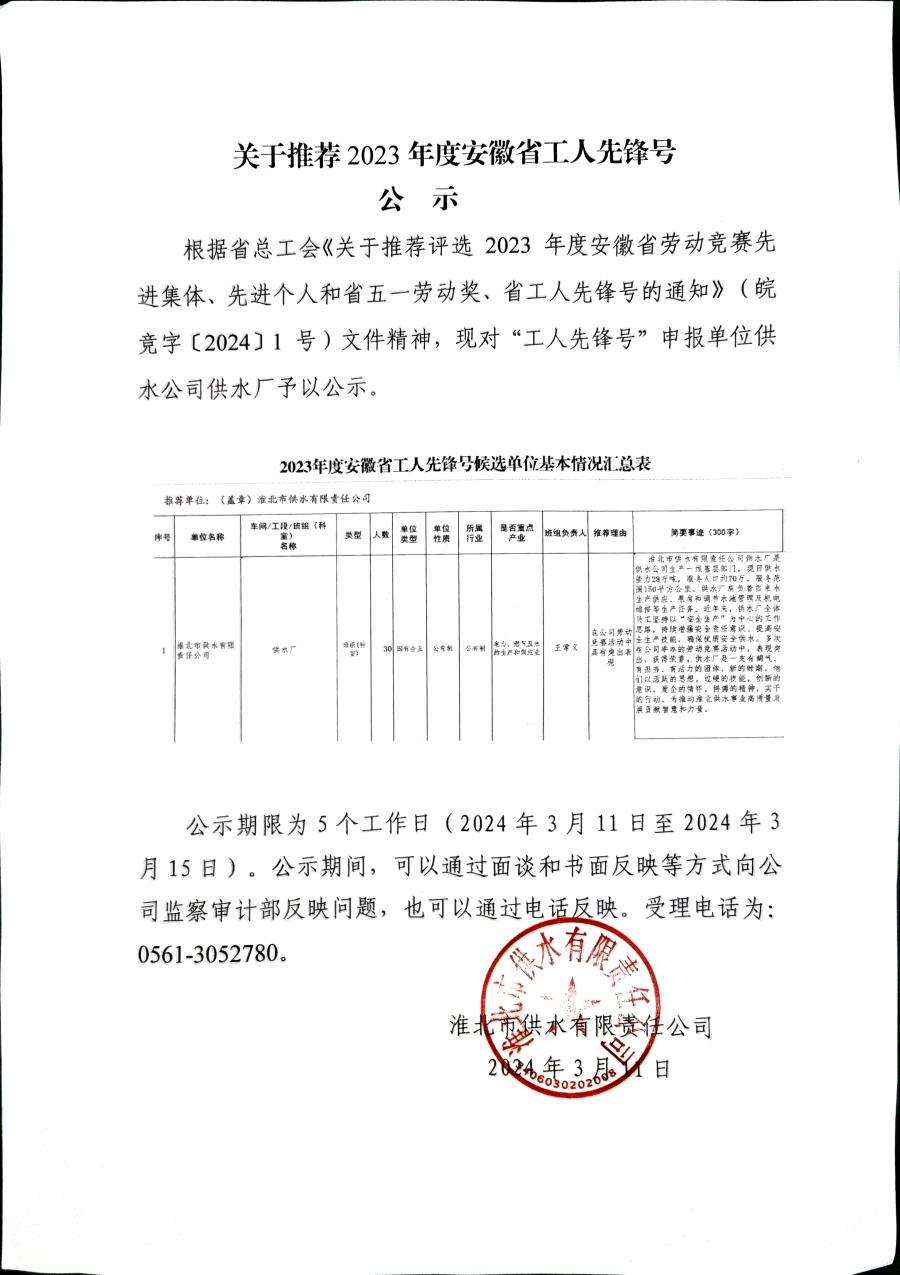 關(guān)于推薦2023年度安徽省工人先鋒號公示