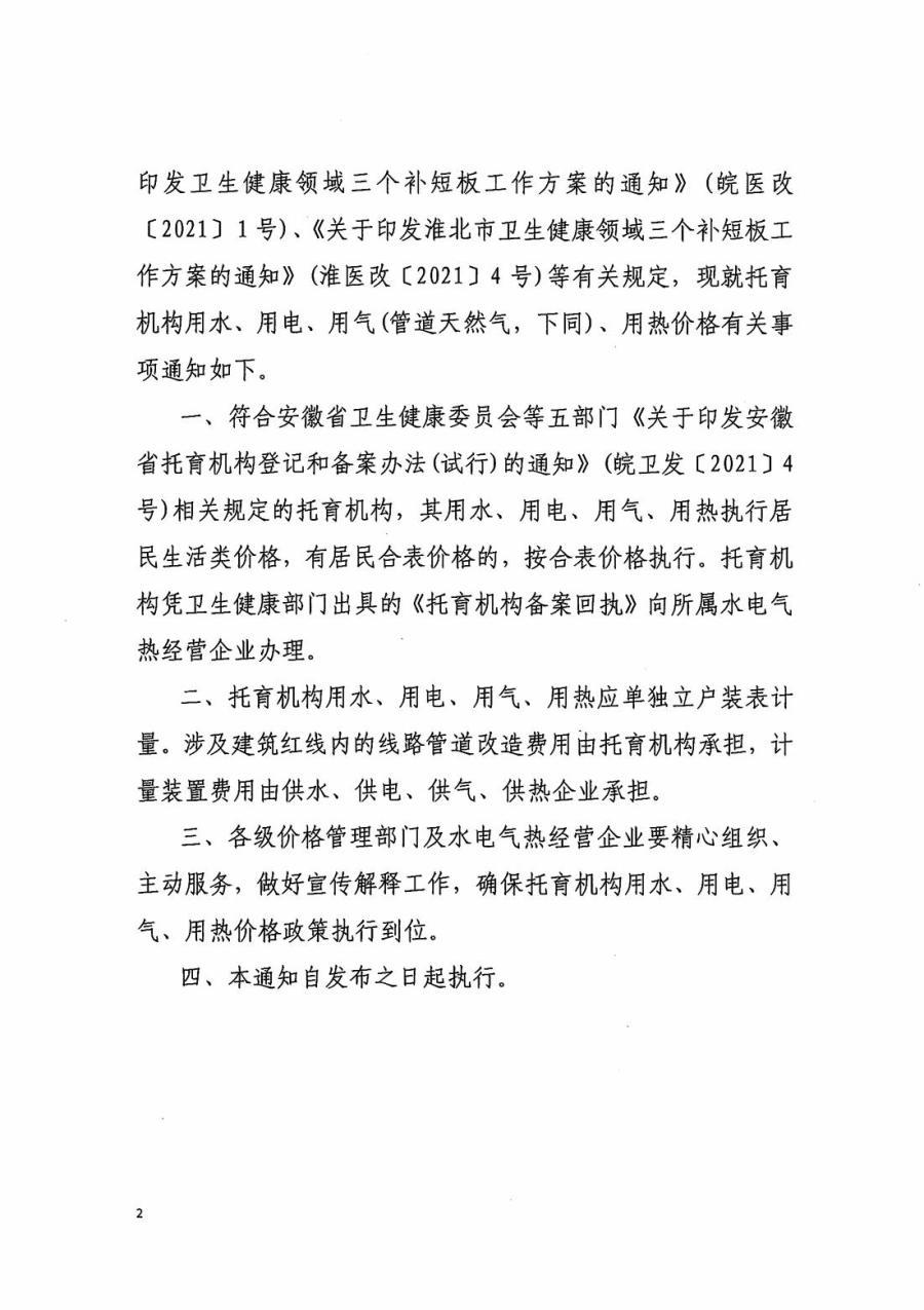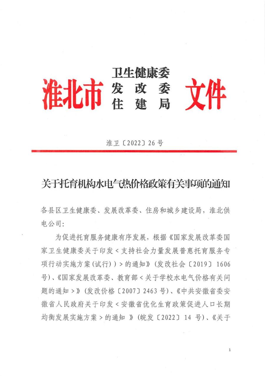 關(guān)于托育機構(gòu)水電氣熱價格政策有關(guān)事項的通知 淮衛(wèi)【2022】26號