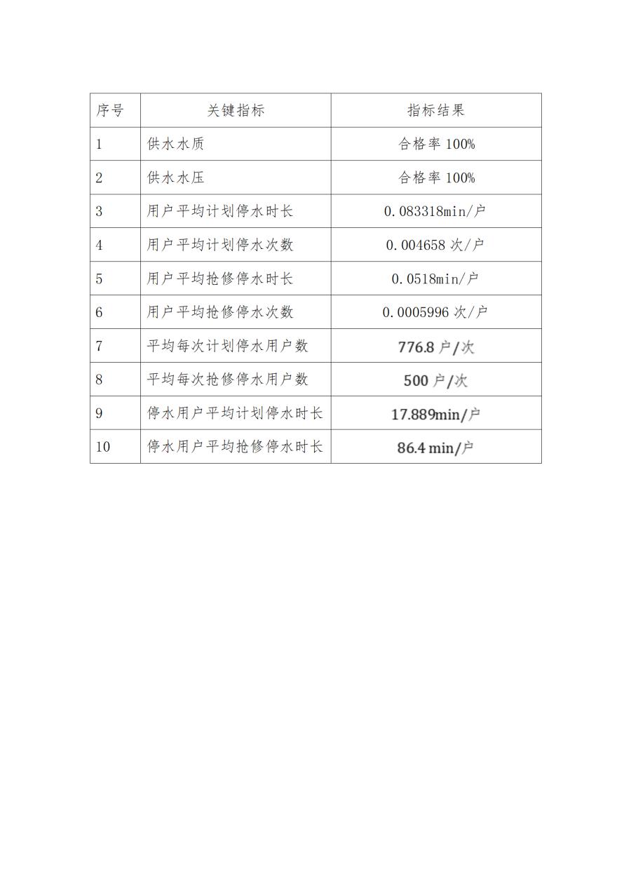 2024年度6月份淮北市供水可靠性關鍵指標