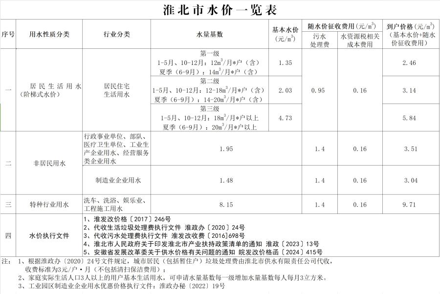 淮北市水價(jià)一覽表