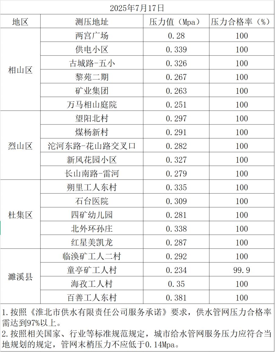 2025年7月17日水壓抽測(cè)公示